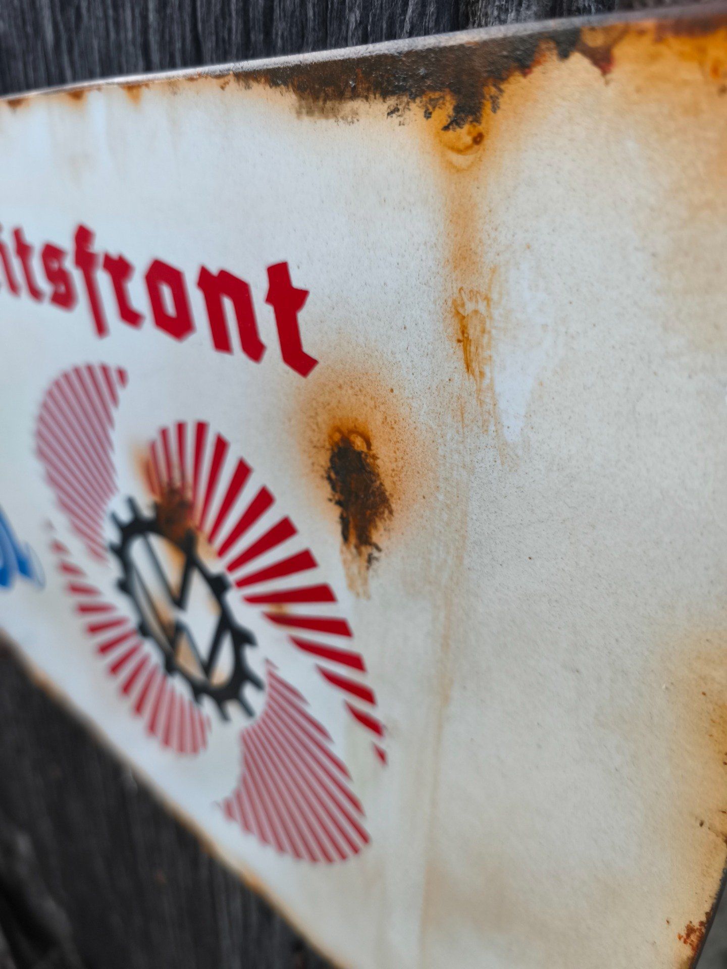 Patine "Authentic Look" : Une patine a été appliqué pour recréer l'usure du temps (oxydation, frottements) et lui donner l'âme d'une plaque retrouvée après des décennies.