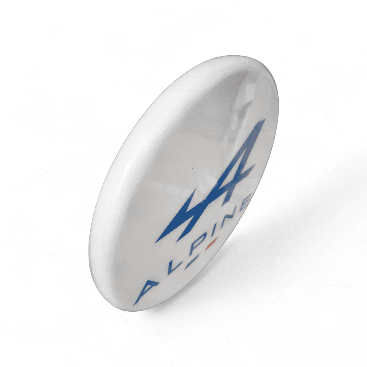 Design : Logo Alpine iconique avec rappel du drapeau tricolore.