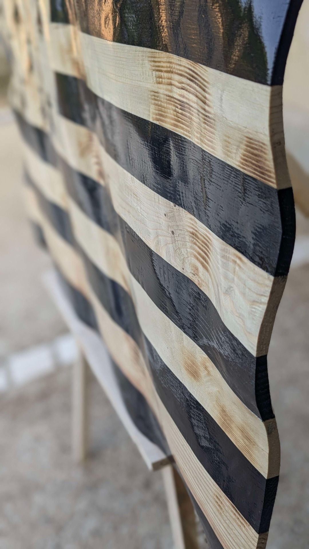 DrapeaDrapeau de fabrication 100%Artisanal à la main,en bois massif façonné avec un relief qu'il lui donne un air de flotter dans les airs.